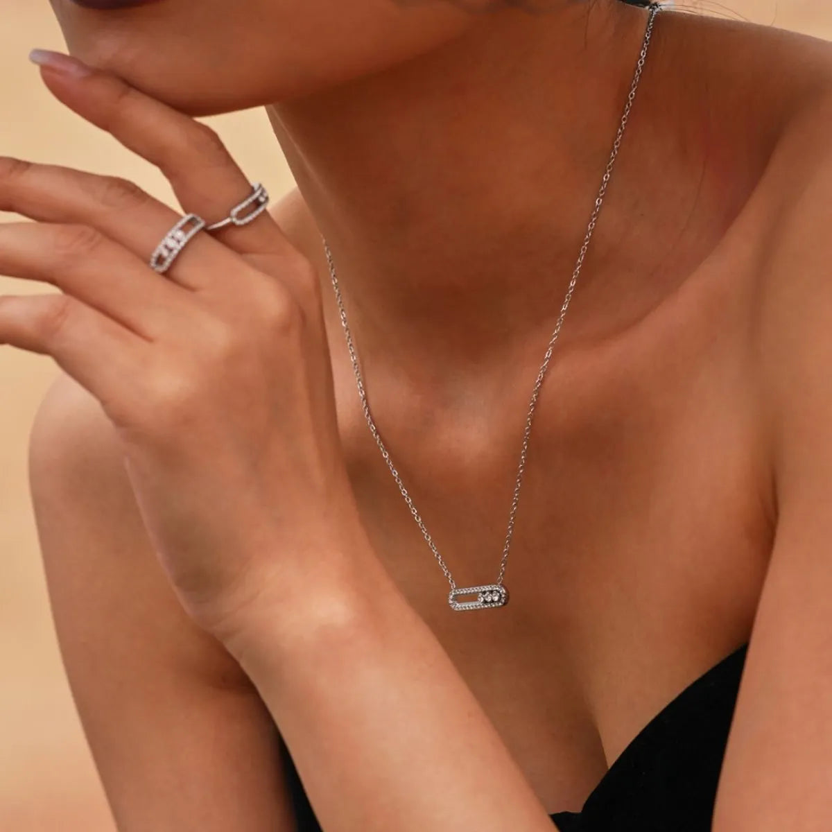 $37.50Moving Crystal Bar Necklace and Ring Jewelry Set